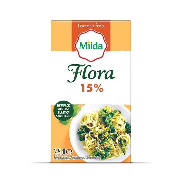 Milda Mat & Bak är ett växtbaserat margarin som är lätt att använda både i matlagning och att baka med. Lätt att arbeta med direkt från kylen och gör dina kanelbullar, kakor och andra bakverk luftiga och saftiga. Milda ger även en god smak vid stekning och är perfekt att använda i pajdegen eller i din dessert. Visste du att Milda Mat & Bak har låg klimatpåverkan? Hela 64% lägre klimatpåverkan än smör. Tillverkas i Helsingborg, Sverige. Milda Mat & Bak är mjölkfri och passar för vegan och vegetarisk kost.
