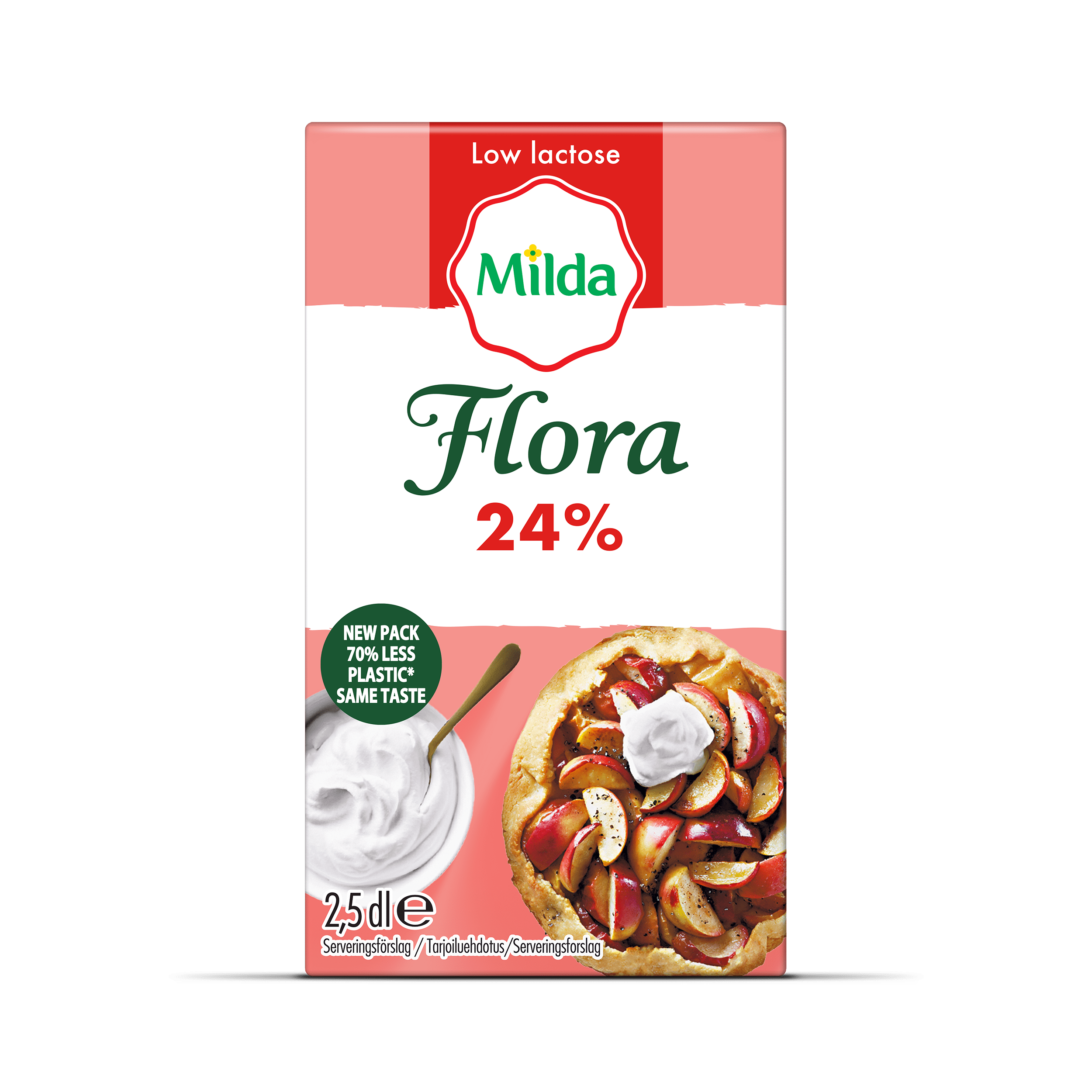 Flora by Milda Visp 24% ger dig ett fylligt vispresultat med krämig textur och passar perfekt som tillbehör till pajer, frukt och bär eller andra desserter. För smakrika varma rätter använd istället Milda Mat&Visp 31% för det bästa resultatet.